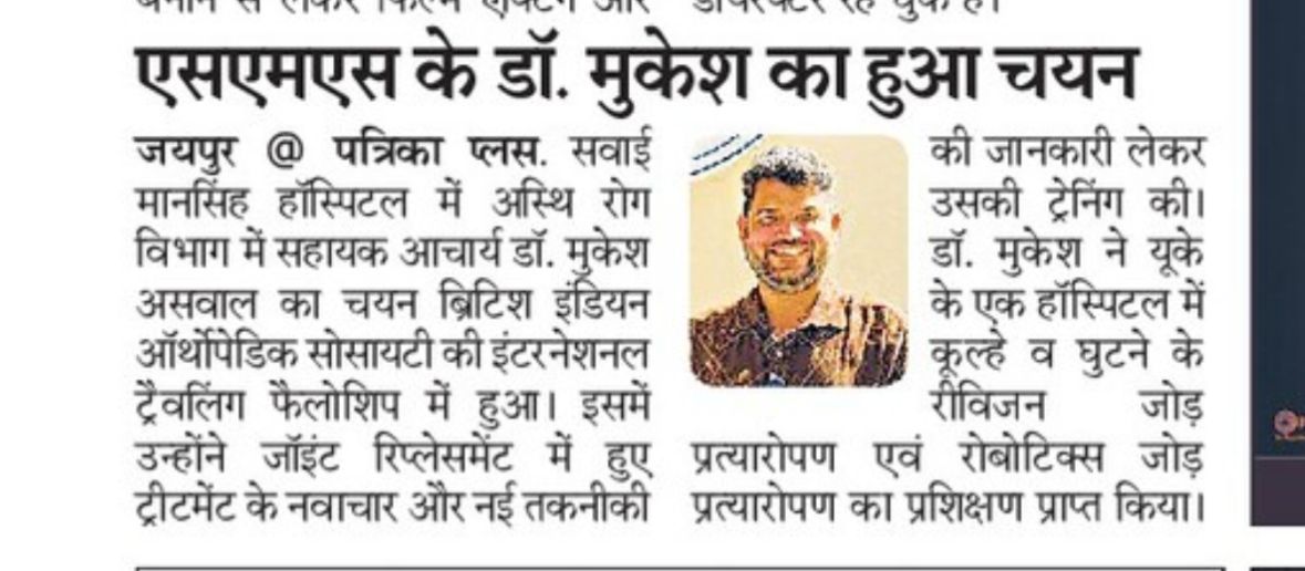 Total Hip Replacement in Jaipur – Expert Care by Dr. Mukesh Aswal Hip pain, stiffness, or difficulty walking can affect your daily life, making even simple movements uncomfortable. When conservative treatments like medicines, physiotherapy, or lifestyle changes fail to bring relief, Total Hip Replacement (THR) becomes a highly effective and long-term solution. Dr. Mukesh Aswal, one of the best total hip replacement surgeons in Jaipur, offers advanced, minimally invasive hip replacement surgery to help patients regain mobility, reduce pain, and return to an active lifestyle. What Is Total Hip Replacement? Total Hip Replacement is a surgical procedure in which a damaged hip joint is replaced with an artificial joint (prosthesis). The surgery aims to: Eliminate chronic hip pain Restore smooth and stable joint movement Improve mobility and flexibility Enhance overall quality of life It is especially beneficial for people with severe arthritis, hip fractures, osteonecrosis, or age-related joint wear. Who Needs Total Hip Replacement? You may require hip replacement if you experience: Persistent hip pain not relieved by medicines Difficulty walking or climbing stairs Limited range of motion Pain while resting or sleeping Hip joint deformity or stiffness Severe arthritis (Osteoarthritis, Rheumatoid arthritis) Hip injury or fractures If these symptoms are affecting your routine, consulting Dr. Mukesh Aswal is the right step toward long-lasting relief. Why Choose Dr. Mukesh Aswal for Hip Replacement in Jaipur? ✔ Highly Experienced Orthopedic Surgeon Dr. Aswal is renowned for his expertise in hip and joint surgeries, performing successful hip replacements with exceptional outcomes. ✔ Advanced Surgical Techniques He uses minimally invasive and muscle-sparing methods for faster recovery and reduced postoperative discomfort. ✔ Best Quality Implants Dr. Aswal uses world-class, durable implants designed to function smoothly for 20+ years. ✔ Faster Recovery & Rehabilitation His structured rehabilitation protocols help patients walk within days and resume normal activities sooner. ✔ Patient-Centric Approach Every patient receives personalized care, detailed counselling, and long-term follow-up support. This makes him widely regarded as the best total hip replacement surgeon in Jaipur. Benefits of Total Hip Replacement Significant pain relief Improved mobility and flexibility Better posture and joint alignment Ability to walk longer distances without pain Return to daily activities with confidence Long-lasting results with advanced implants For many patients, hip replacement is truly life-changing. What Happens During the Surgery? A Total Hip Replacement involves: Removing the damaged bone and cartilage Replacing them with a high-quality artificial joint Ensuring proper alignment and stability Closing the incision with minimal scarring The entire procedure is safe, performed under anesthesia, and supported by modern surgical technology for precision and safety. Recovery After Total Hip Replacement Most patients can: Walk with support within 24–48 hours Resume daily activities within 3–4 weeks Recover fully in 2–3 months with physiotherapy Dr. Mukesh Aswal provides guidance on exercises, lifestyle adjustments, and follow-up sessions to ensure smooth rehabilitation. When Should You Meet Dr. Mukesh Aswal? If hip pain is interfering with your: Work Daily routine Mobility Sleep Mental wellbeing …it’s time to consult the expert. Dr. Aswal offers a detailed evaluation, advanced diagnostics, and the best treatment options tailored to your condition. Conclusion Total Hip Replacement is a safe, highly effective, and long-lasting solution for chronic hip pain and disability. With expertise, advanced technology, and a patient-first approach, Dr. Mukesh Aswal stands out as the best total hip replacement surgeon in Jaipur. If you or your loved one needs relief from severe hip problems, book a consultation with Dr. Aswal and take the first step toward a pain-free, active life.